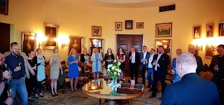 | Illallispuhe Haikon kartanon pyöreässä salissa |